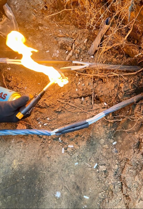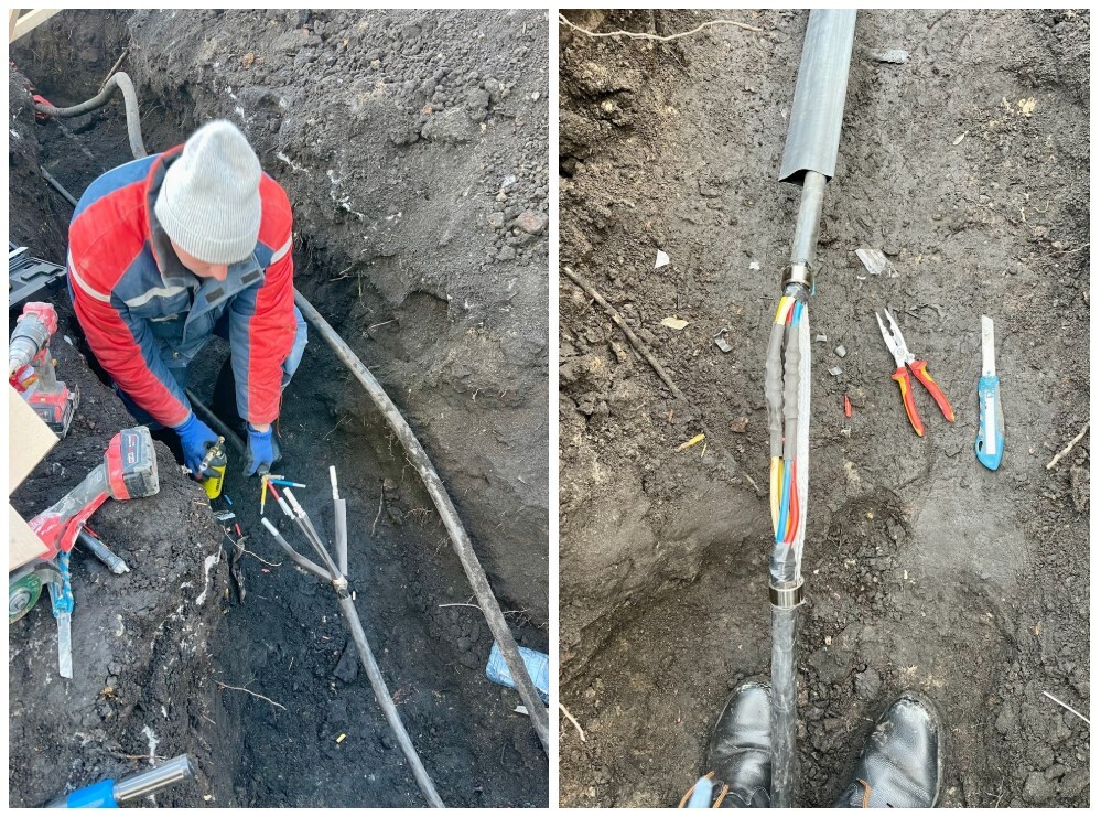 Аварийный ремонт порванных экскаватором 2-х кабелей 380 В.