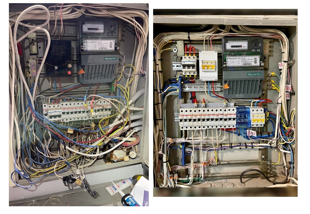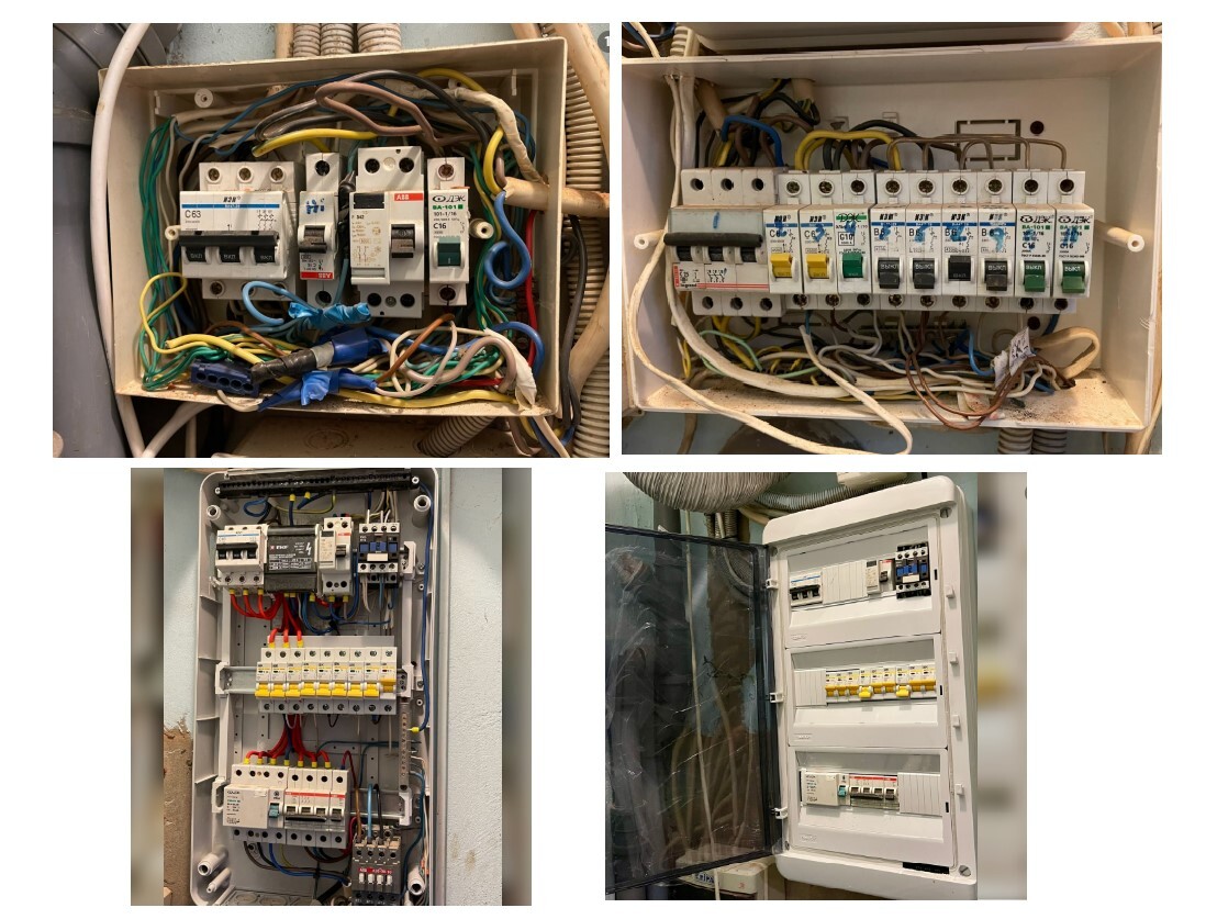 Объединили два эл.щита. Поменяли автоматы. Добавили защиту.